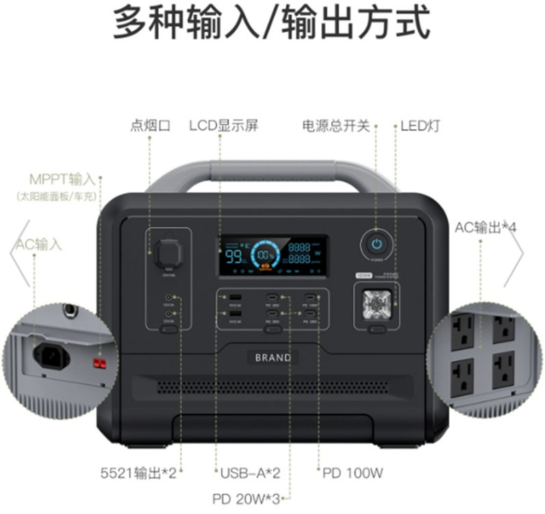 本產(chǎn)品是一款便攜式儲能電源,適用于家庭應(yīng)急備電、戶外旅行、應(yīng)急救災(zāi)、野外工作等應(yīng)用場合。產(chǎn)品內(nèi) 置鋰電池,電池為 15 串設(shè)計(jì),電壓為 48Vdc(15*3.2V),有逆變交流輸出,輸出 110V(50/60Hz)純正弦波,帶有 多個(gè)直流輸出端口輸入端口以及 USB-A 和 Type-C 等接口,并具有UPS功能模式。