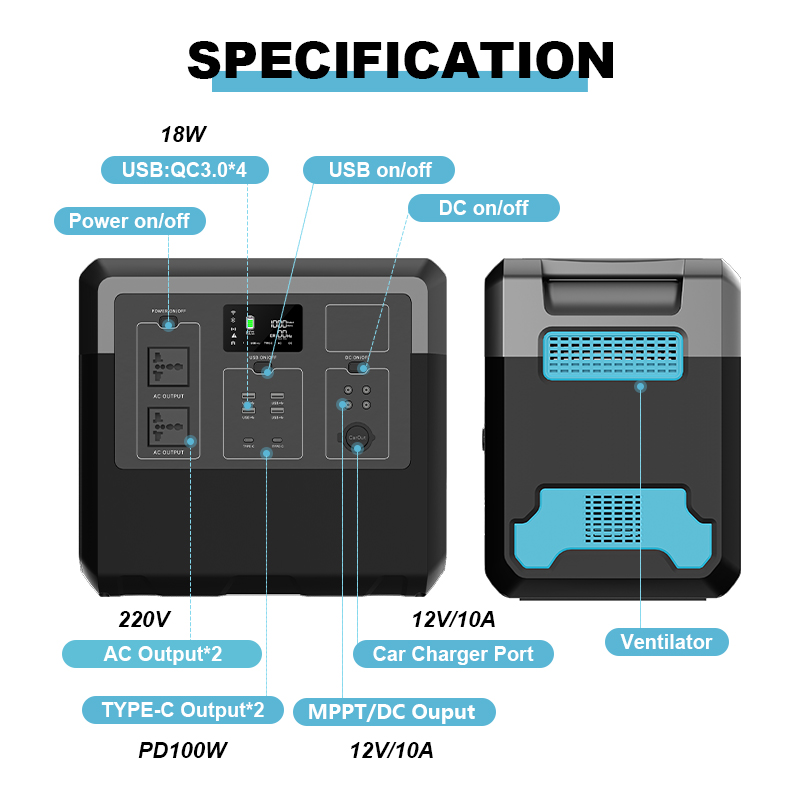 本產(chǎn)品是一款便攜式內(nèi)置雙向逆變器并且具有入門級 UPS 功能的儲能產(chǎn)品,適用于家庭應(yīng)急備電、戶外旅行、應(yīng)急救災(zāi)、野外工作等應(yīng)用場合。產(chǎn)品內(nèi)置磷酸鐵鋰電池,電池為 16 串設(shè)計,電壓為 51.2Vdc(16*3.2V),電池容量:50Ah,輸出 (50/60Hz)純正弦波;本產(chǎn)品不僅具有豐富的輸出接口:TYPE-C*2、USB-A*4、DC-5521*4、點煙器*1、AC 插座(中規(guī)/歐規(guī)*2,美規(guī)*4),還配置有 WIFI 和藍牙功能,支持并機,可通 APP 遠程操控。