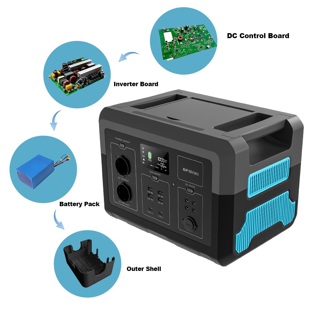 本產(chǎn)品是一款便攜式內(nèi)置雙向逆變器并且具有入門級(jí) UPS 功能的儲(chǔ)能產(chǎn)品,適用于家庭應(yīng)急備電、戶外旅行、應(yīng)急救災(zāi)、野外工作等應(yīng)用場(chǎng)合。產(chǎn)品內(nèi)置磷酸鐵鋰電池,電池為 16 串設(shè)計(jì),電壓為 51.2Vdc(16*3.2V),電池容量:25Ah,本產(chǎn)品不僅具有豐富的輸出接口:TYPE-C*2、USB-A*4、DC-5521*4、點(diǎn)煙器*1、AC 插座(中規(guī)/歐規(guī)*2,美規(guī)*4),還配置有 WIFI 和藍(lán)牙功能,支持并機(jī),可通 APP 遠(yuǎn)程操控。
