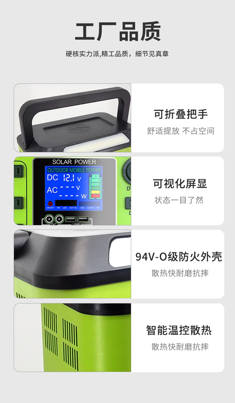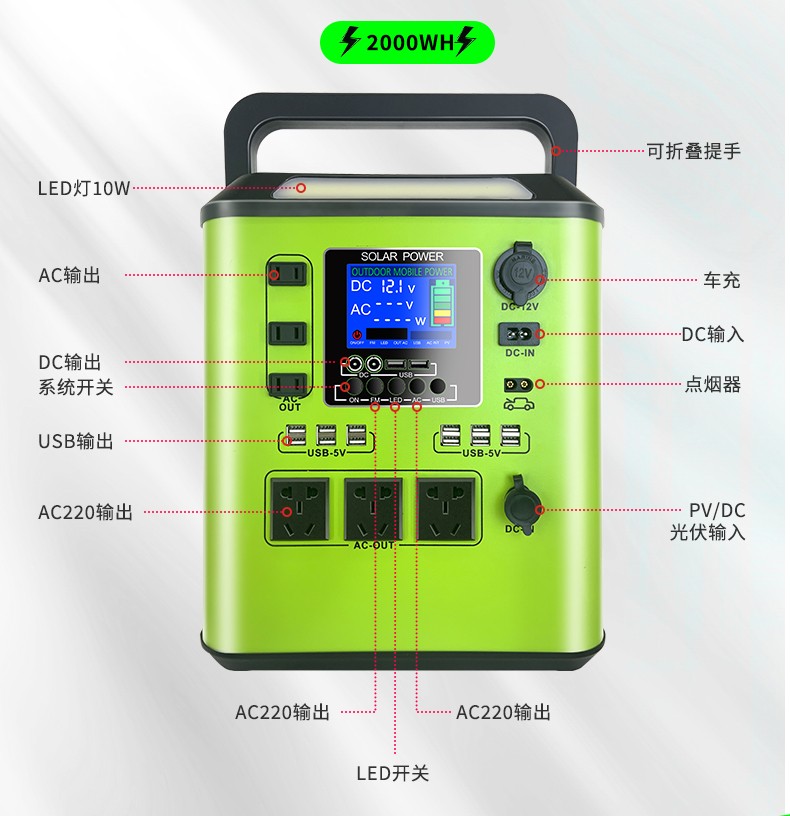 適用于戶外應(yīng)急備電、戶外旅行、應(yīng)急救災(zāi)、野外工作等應(yīng)用場(chǎng)合。產(chǎn)品內(nèi)置三元鋰電池,電池為 6 串設(shè)計(jì),電壓為 24Vdc(6*3.7V),電池容量:3000Wh,輸出 (50/60Hz)純正弦波;本產(chǎn)品不僅具有豐富的輸出接口:USB-A*12、DC-5521*2、點(diǎn)煙器*1、AC 插座(中規(guī)/歐規(guī) ,美規(guī) ,日規(guī))。
