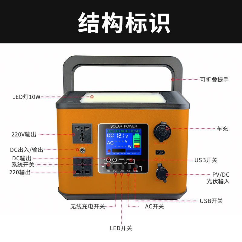 采用全新A品國軒磷酸鐵鋰電池,純正弦波220V逆變器輸出,支持手機(jī)無線充,太陽能充電