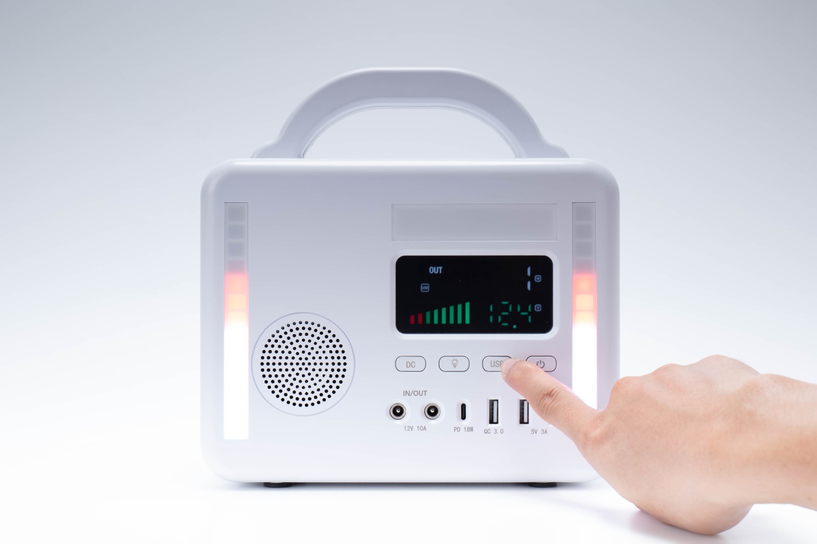本產(chǎn)品是一款便攜式直流儲(chǔ)能產(chǎn)品,適用于家庭應(yīng)急備電、戶外旅行、應(yīng)急救災(zāi)、野外工作等應(yīng)用場(chǎng)合。產(chǎn)品內(nèi)置磷酸鐵鋰電池,電池為 4串1并設(shè)計(jì),電壓為 12.8Vdc(4*3.2V),電池容量:15Ah,本產(chǎn)品具有豐富的輸出接口:TYPE-C*1、USB-A*3、DC-5521*2